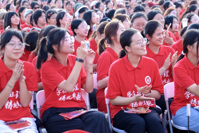 “我们是青春的光与热,融入教育强国的广阔画卷;我们是炽热的星与火,踏向民族复兴的伟大征程……”2024年“0001”号录取通知书获得者、化工学院2024级本科新生唐瑞琪,带领全体新生进行宣誓。
